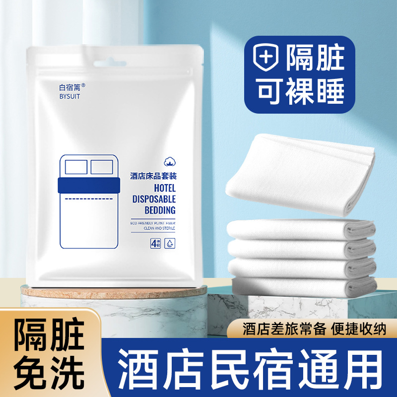 使い捨てベッドシーツと掛け布団カバーの4点セット、滅菌済み、旅行、ホテル、B&B、裸で寝ても汚れない寝具