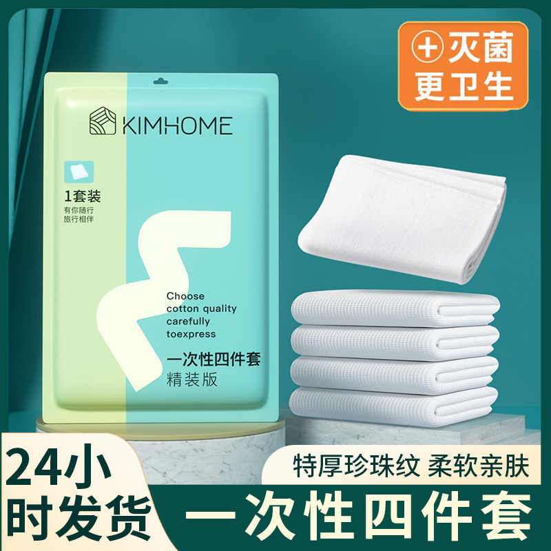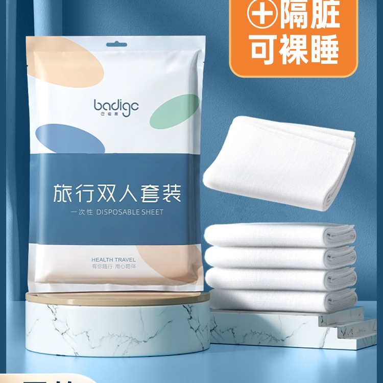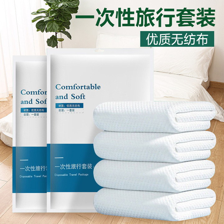 使い捨てベッドシーツ、旅行用ダブル4点セット、出張ホテル、使い捨て枕カバー、タオル、バスタオル卸売