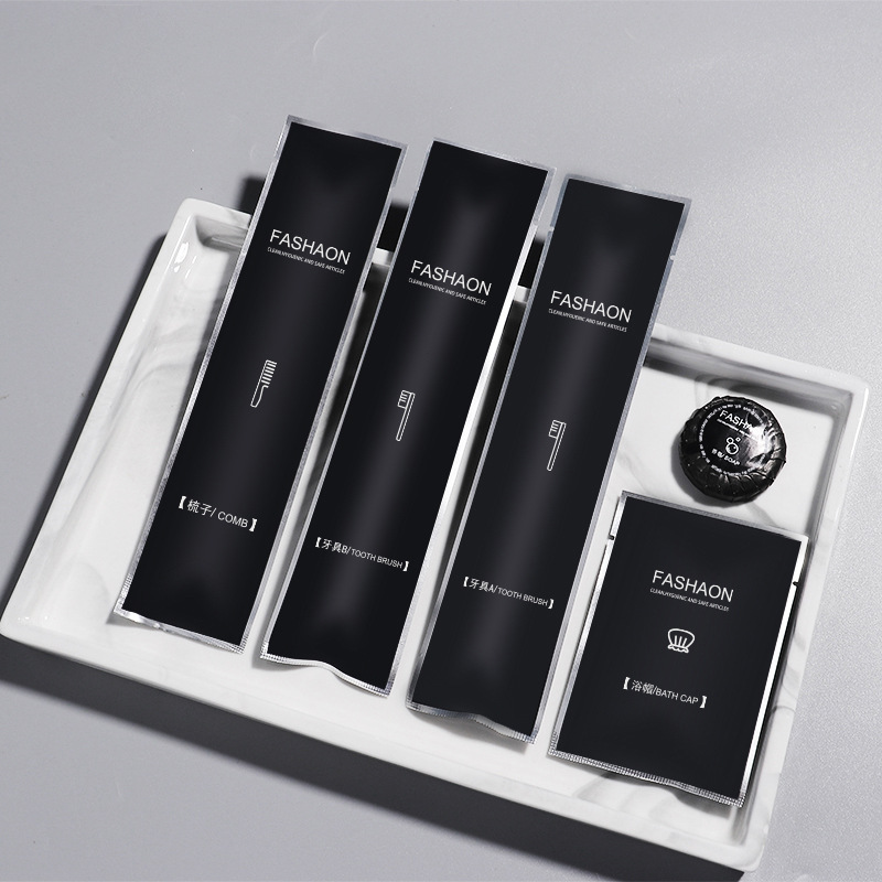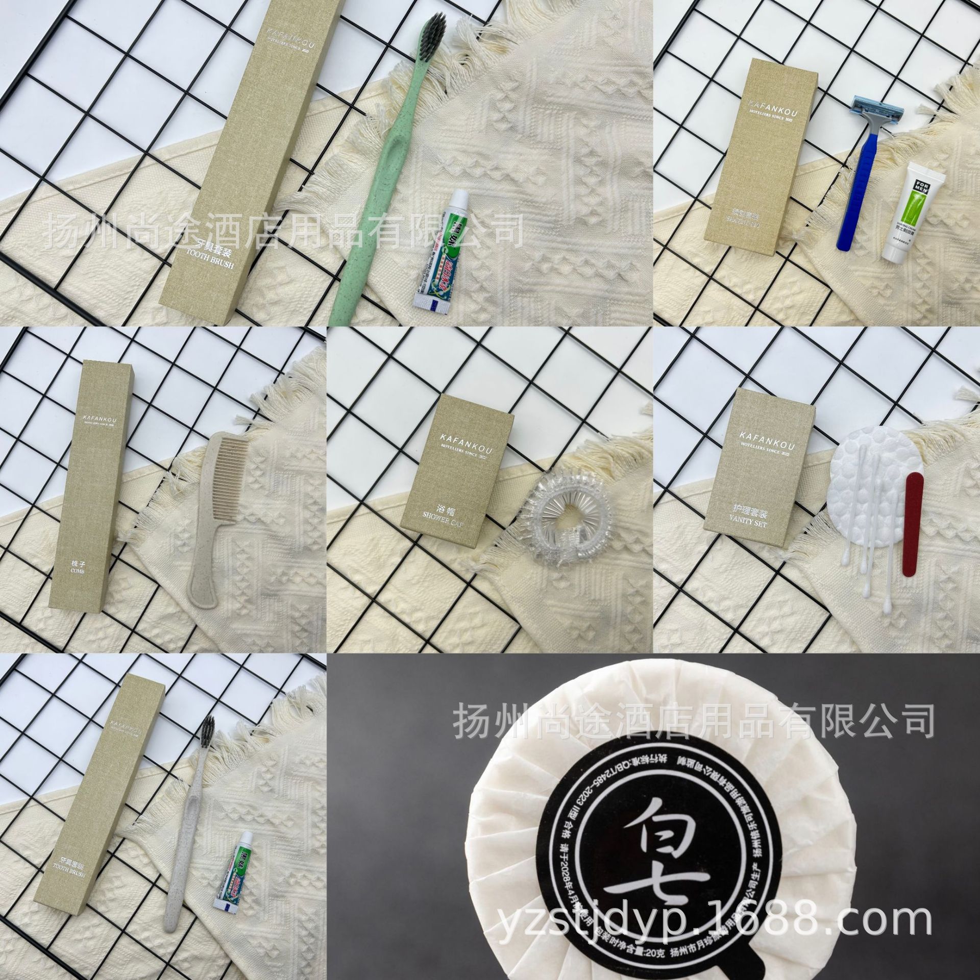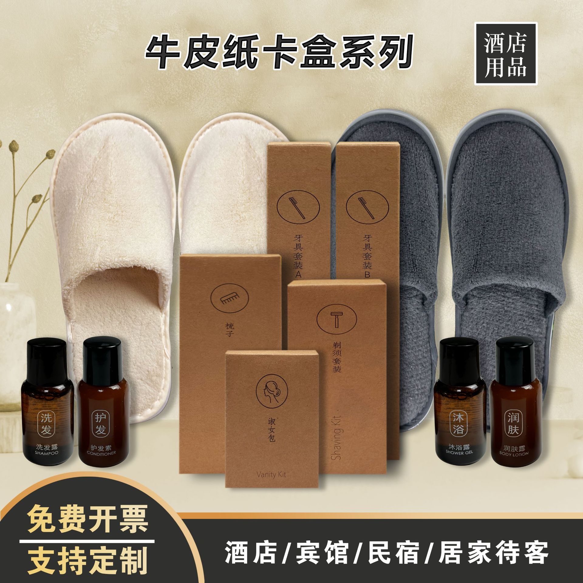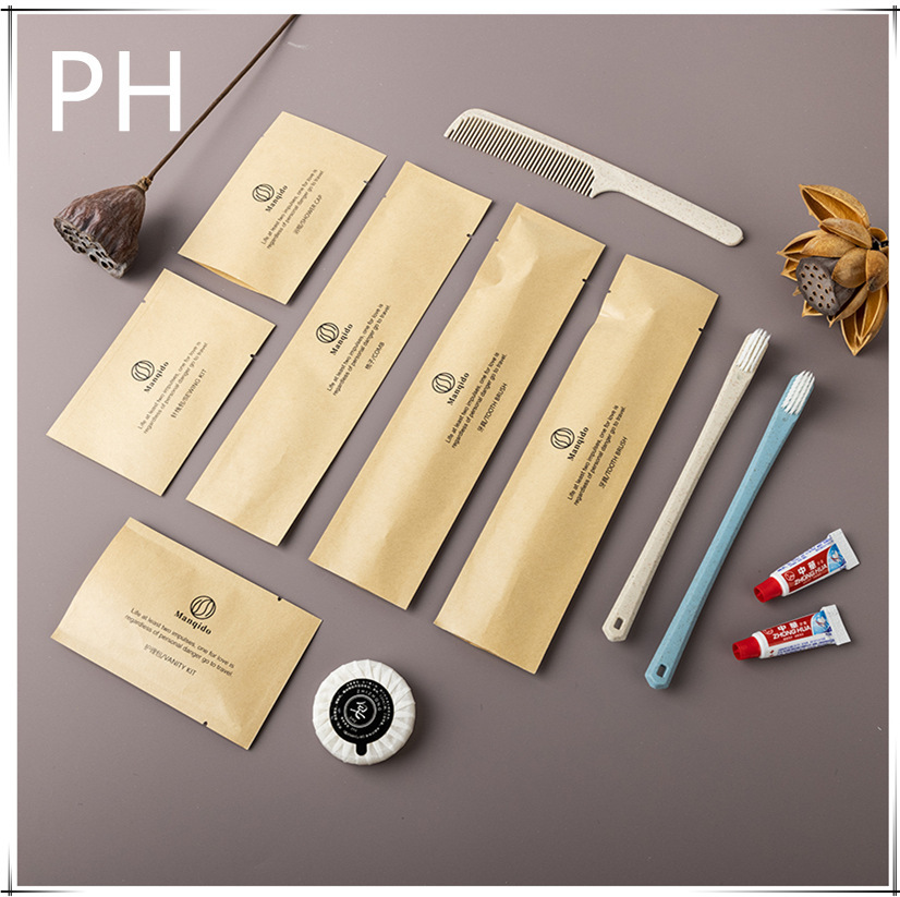 ホテルの使い捨て用品セットは、クラフト紙箱、竹歯ブラシ、木製櫛、環境に優しく分解性に設計できます。