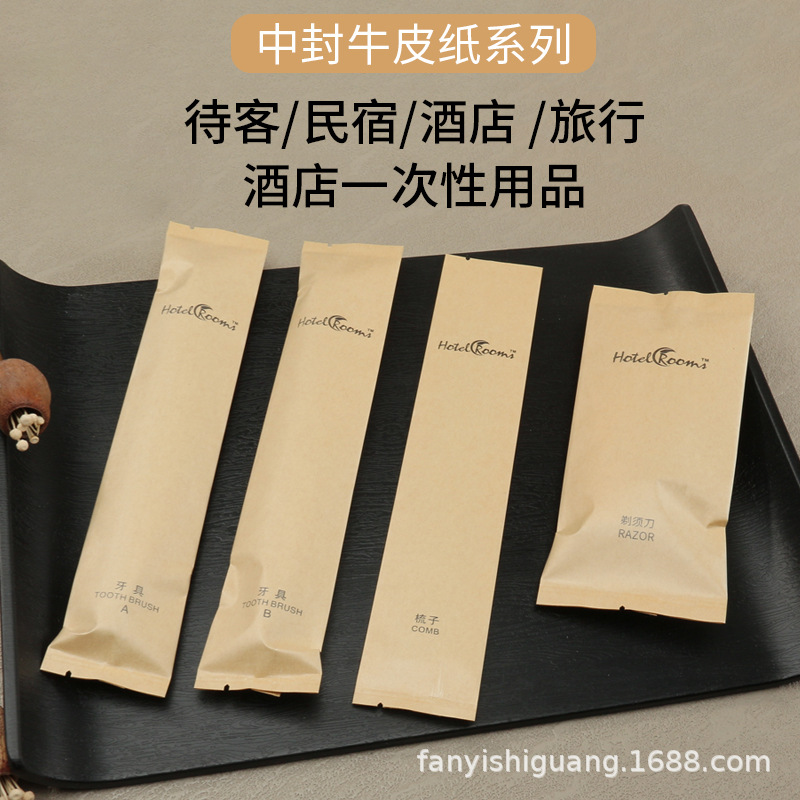 ホテルの使い捨てバスアメニティセットホテルのクラフト紙袋歯ブラシツーインワンホームホスピタリティ歯ブラシ