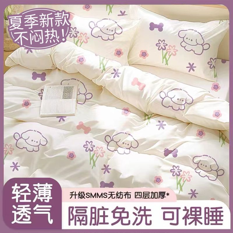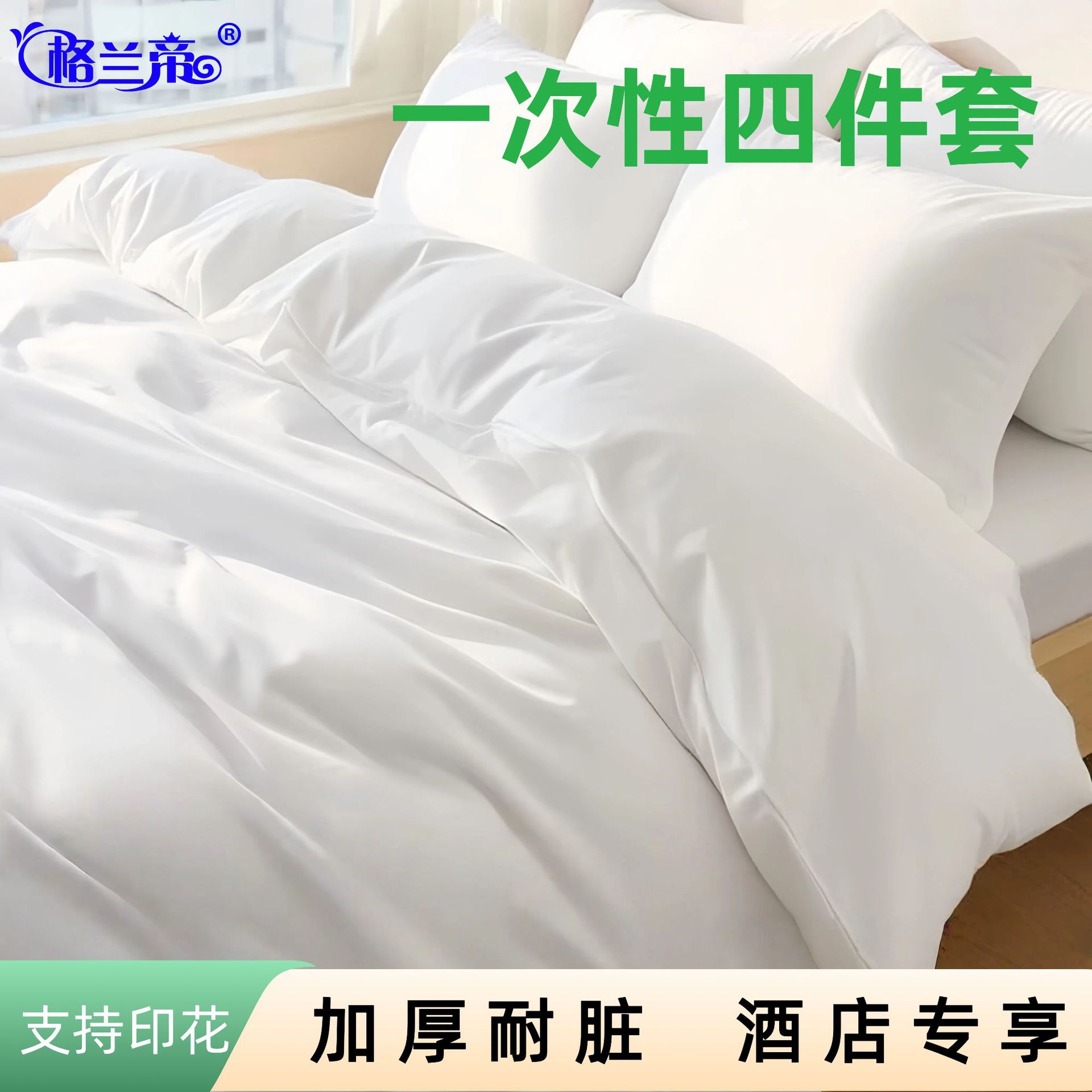 使い捨てベッドシーツ、掛け布団カバー、枕カバー、4点セット、ダブルホテル寝具セット、旅行用ポータブル厚手ベッドシーツセット