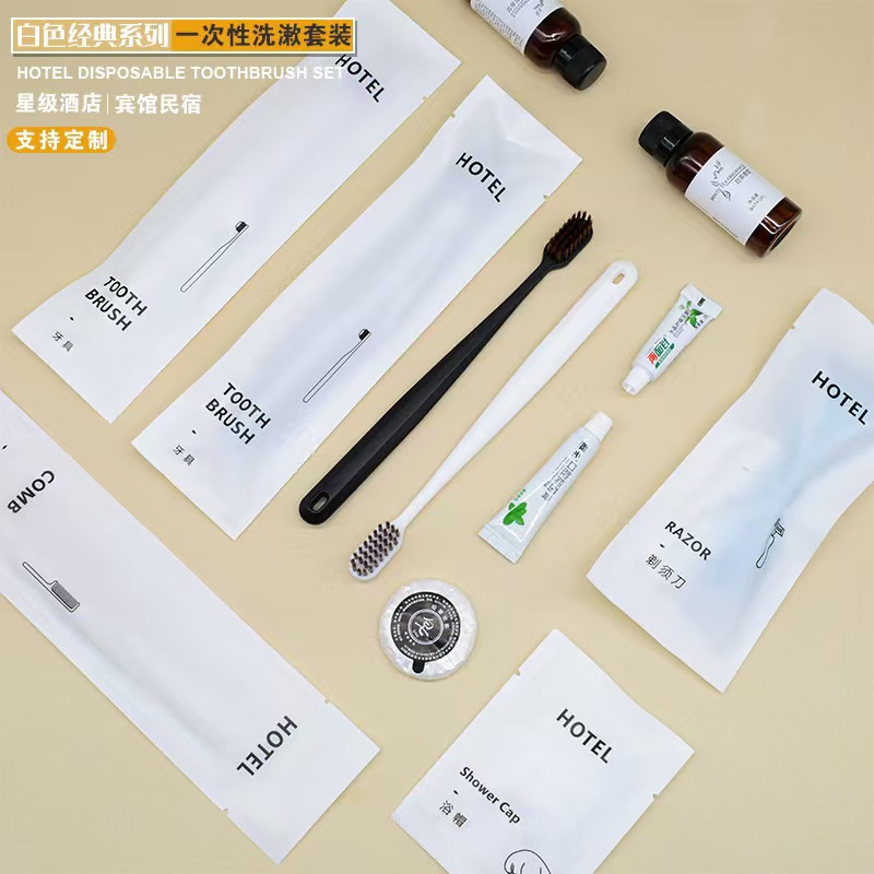 ホテル用使い捨て歯ブラシ、B&B、ホテル用使い捨てアメニティセット、フルセット、メーカー卸売印刷