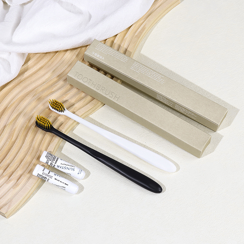歯磨き粉付きハイエンド使い捨て歯ブラシ、ワイドヘッド、柔らかい毛、ホテルおよびB&Bアメニティセット、卸売、ロゴ印刷可能