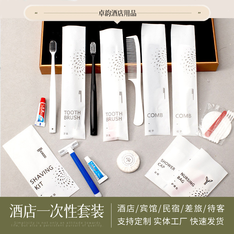 民宿ホテルホテル使い捨て用品セット歯ブラシ歯磨き粉櫛シェーバーシャワーキャップ洗面清潔卸売り