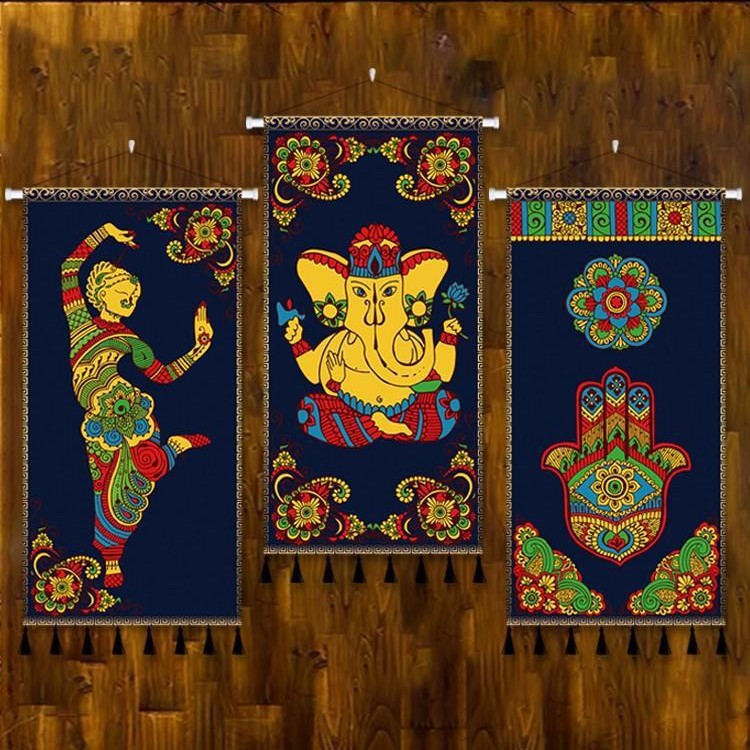 东南亚泰式布艺装饰挂画泰式餐厅瑜伽馆民宿酒店室内挂毯背景布画