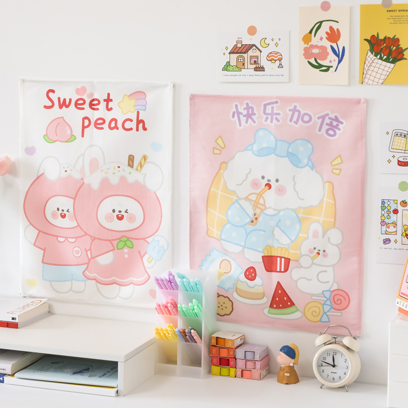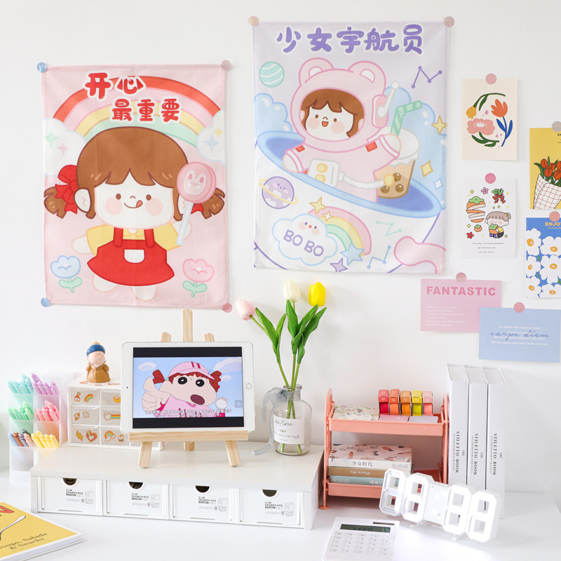 漫画背景布少女心かわいいぬいぐるみ寮直播間タペストリー少女心部屋装飾ベッドの壁布