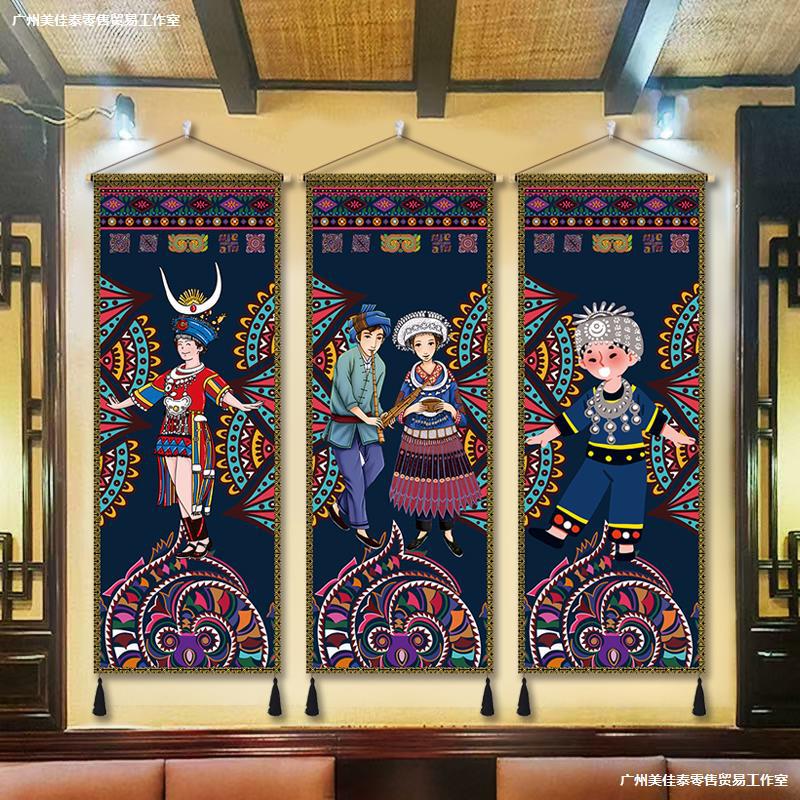 苗族傣族民族风布艺挂毯云南民宿酒店室内挂画特色餐厅背景墙挂布