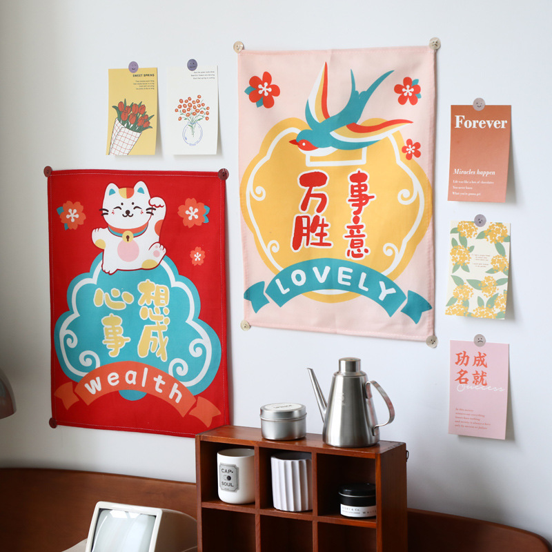 賃貸住宅の改造のタペストリーの装飾の背景の布の寝室の寮の漫画は金持ちになります。