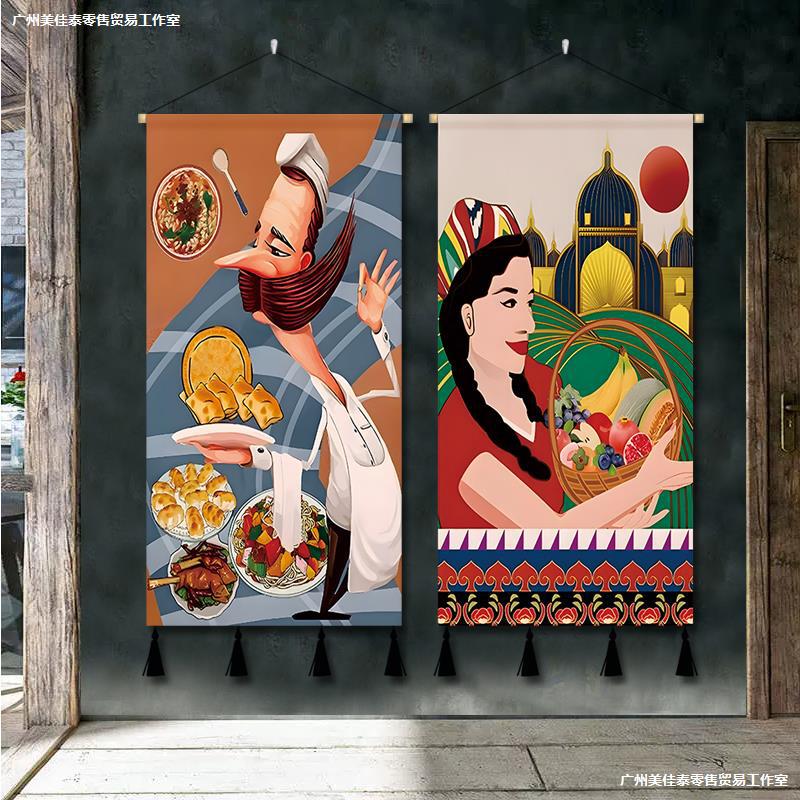 新疆の特徴的な布アート吊り絵画エスニックスタイルタペストリーB&Bレストランホテル壁食品装飾背景布吊り布