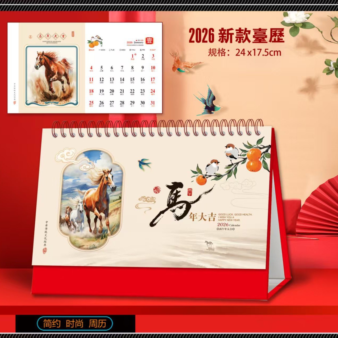 2026年馬年新作韓国版卓上カレンダー特別版カレンダー印刷企業会社ロゴ広告印刷カレンダー卸売
