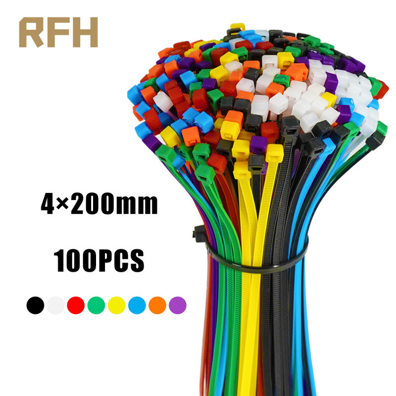 4×200mm 3×200mm サイズ 100 個/バッグ ケーブルタイ マルチカラー ブラック