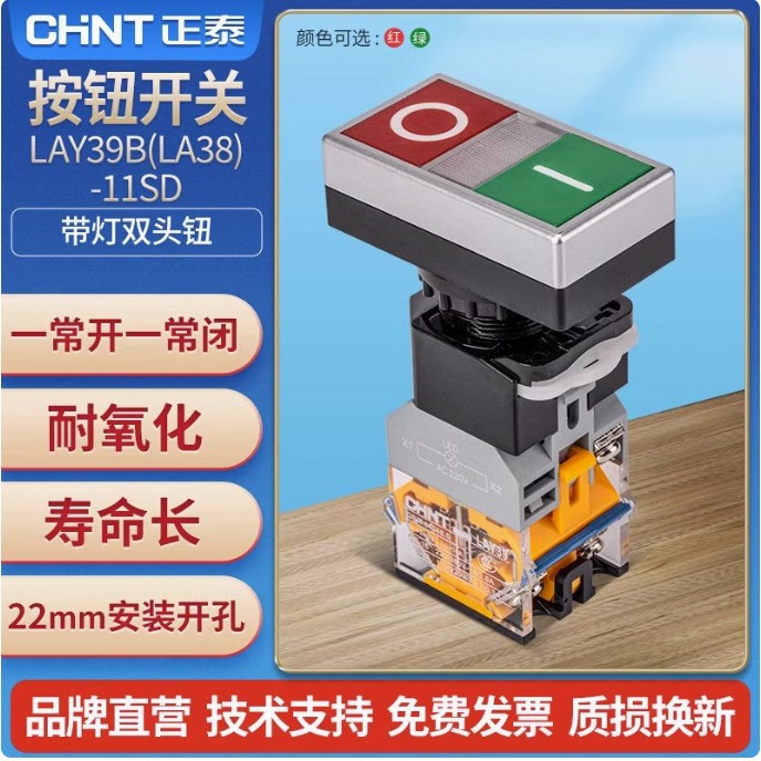 Chint スイッチボタン ライト付き双頭ボタン LAY39B-LA38-11SD 赤と緑、1 つのノーマルオープンと 1 つのノーマルクローズイエロー