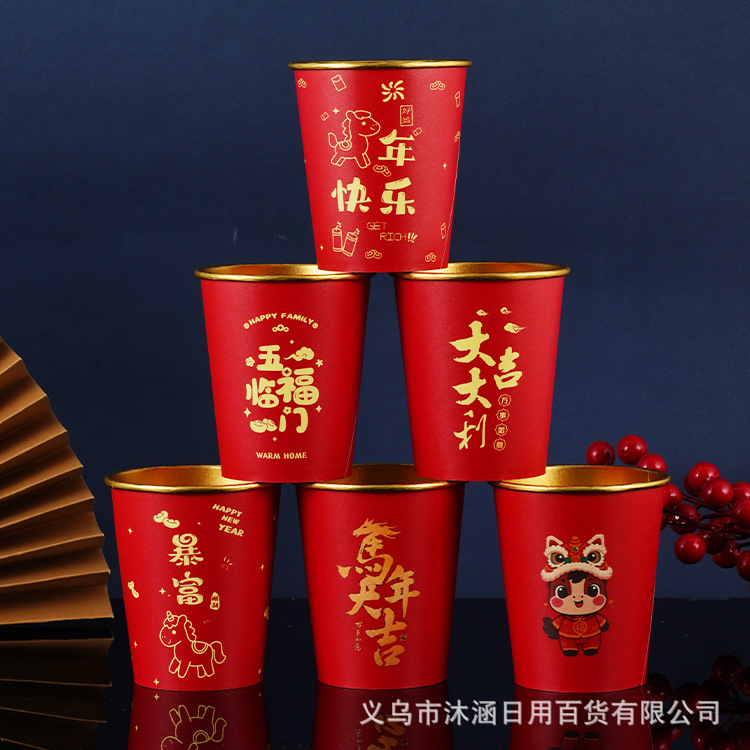 2026年馬年高級金箔紙コップ新年使い捨て水コップ家庭用厚手コーヒーカップ春節卸売