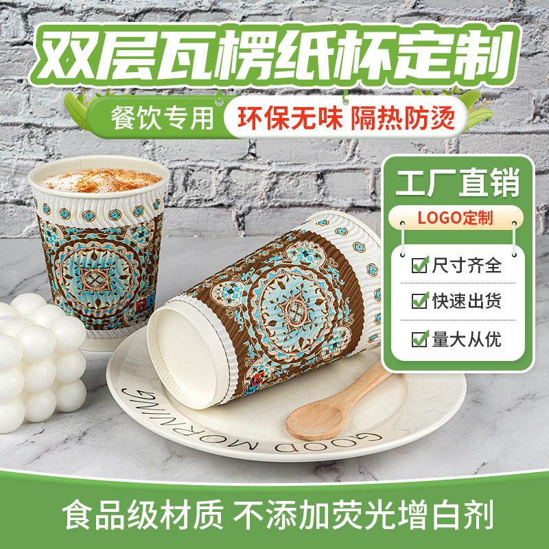 使い捨てコーヒーカップミルクティー熱飲ins厚い断熱紙コップのテイクアウトパッケージ漏れ防止商用ロゴ印刷