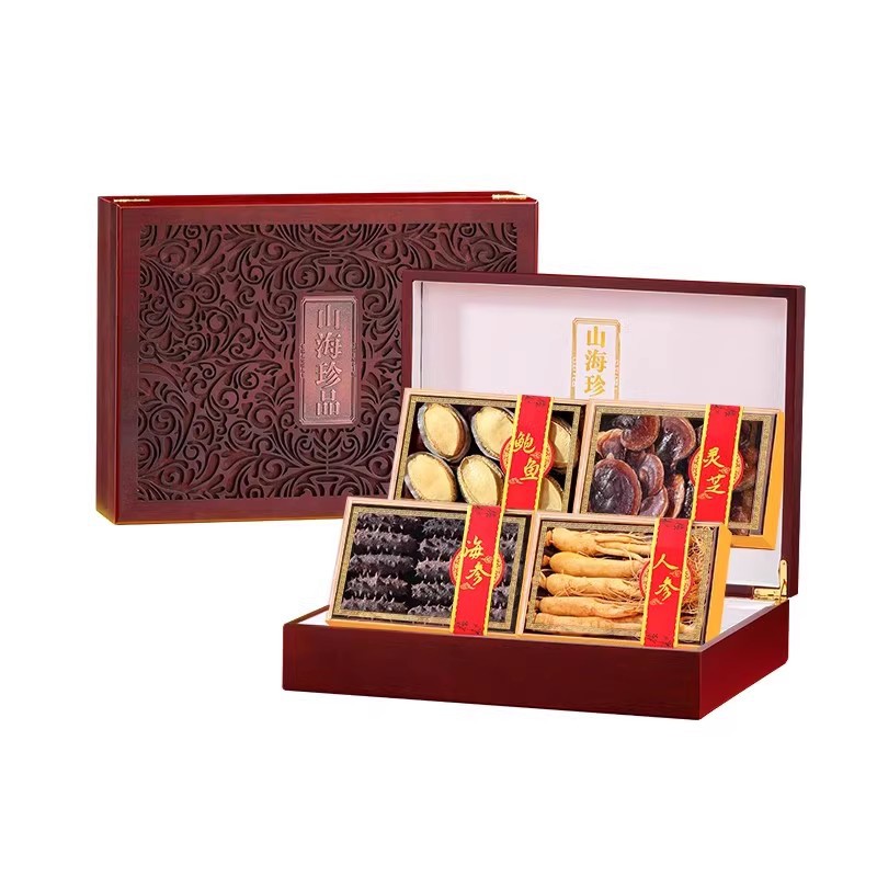 淡い乾燥ナマコ、アワビ、高麗人参、花の皮、中秋節ギフトボックス、長老への山の海の珍味ギフト ll