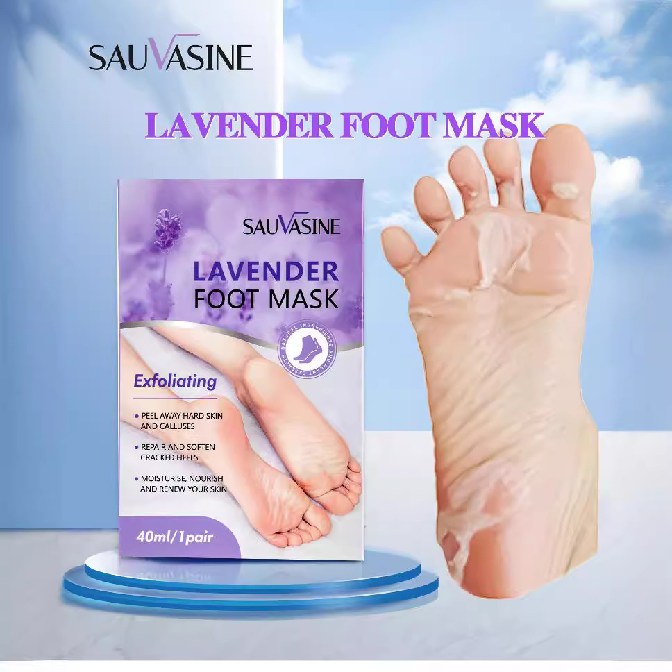 ラベンダー角質除去フットマスク、水分補給、若返り、角質軟化、角質除去、角質除去、滑らかな肌のための外国貿易専用