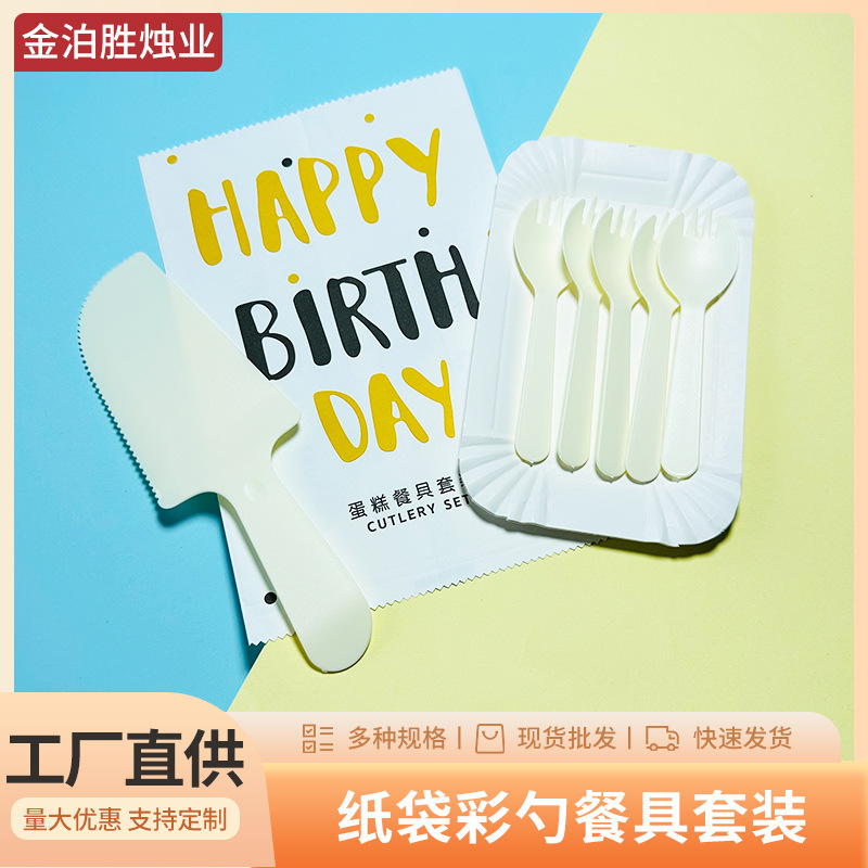ナイフフォーク皿キャンドル使い捨てケーキ食器セット誕生日皿フォーク焙煎用品卸売り紙皿フォークセット