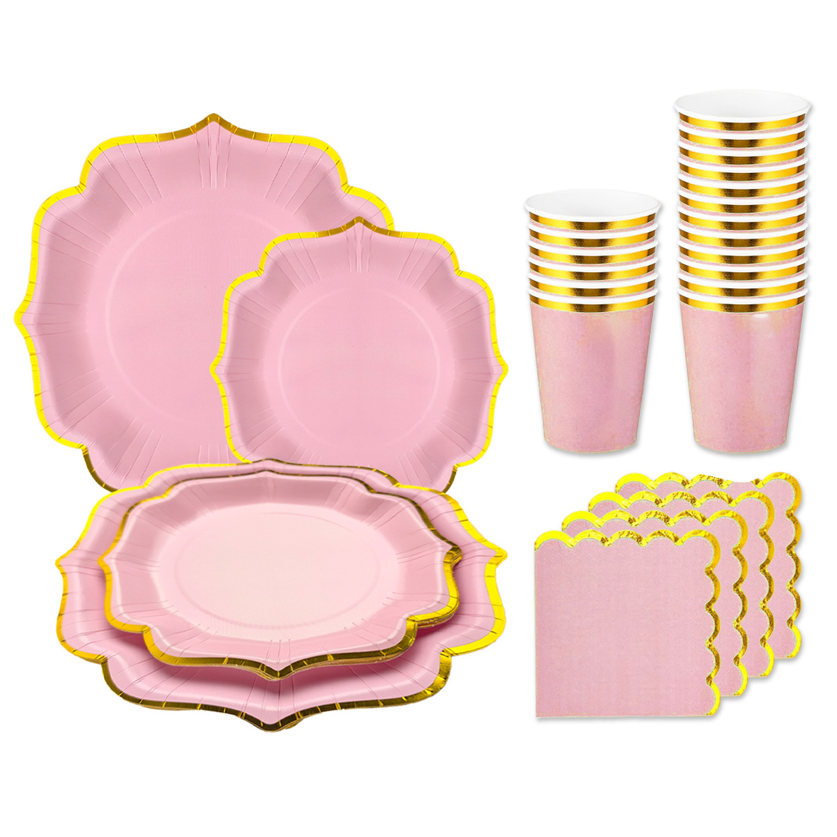 在庫あり Amazon ピンク ブロンズ パーティー用品 使い捨て食器セット 使い捨てプレート ティッシュペーパー カップ