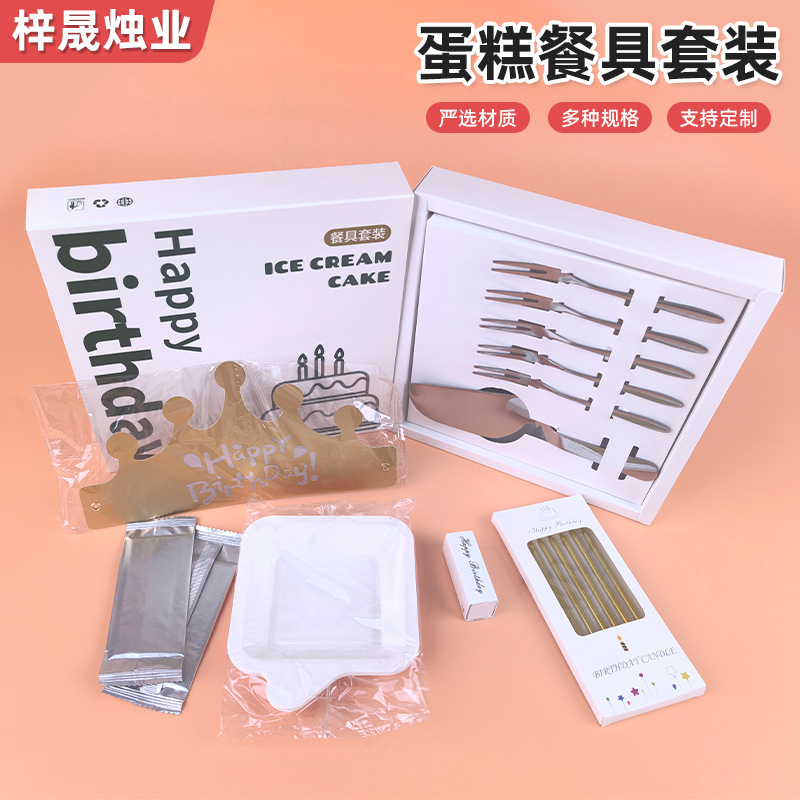 誕生日ケーキ食器セット使い捨て独立ナイフフォーク皿食器ギフトボックス皿フォーク帽子セットセット
