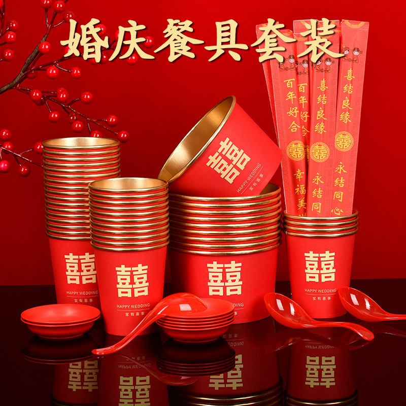 使い捨て食器と箸の結婚高級金箔紙コップ三点セットの厚手結婚式の酒席四点セットの食器十人分