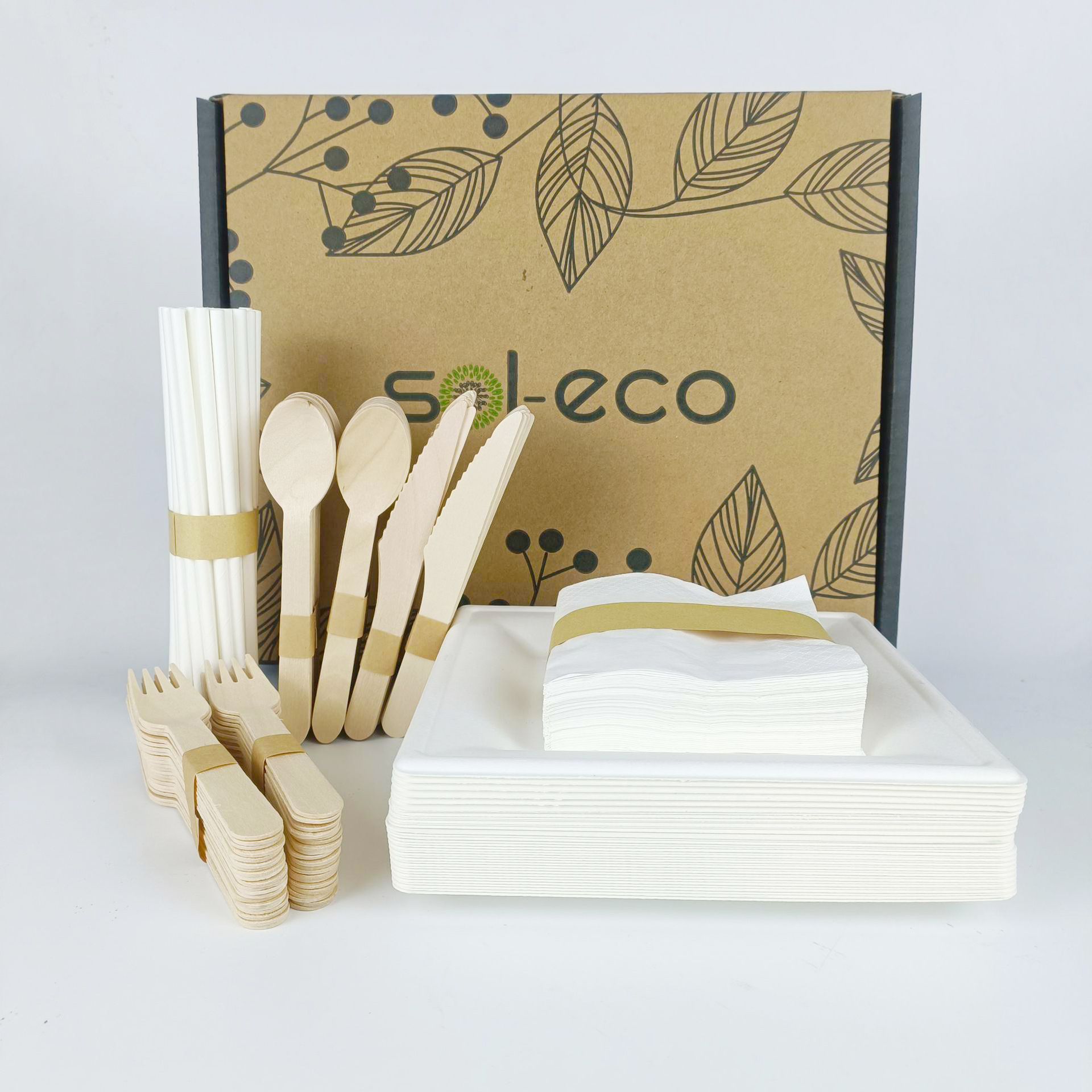 国境を越えた輸出は使い捨ての全分解パルプサトウキビ食器セット西洋ナイフフォークスプーンパーティ食器を決めることができる