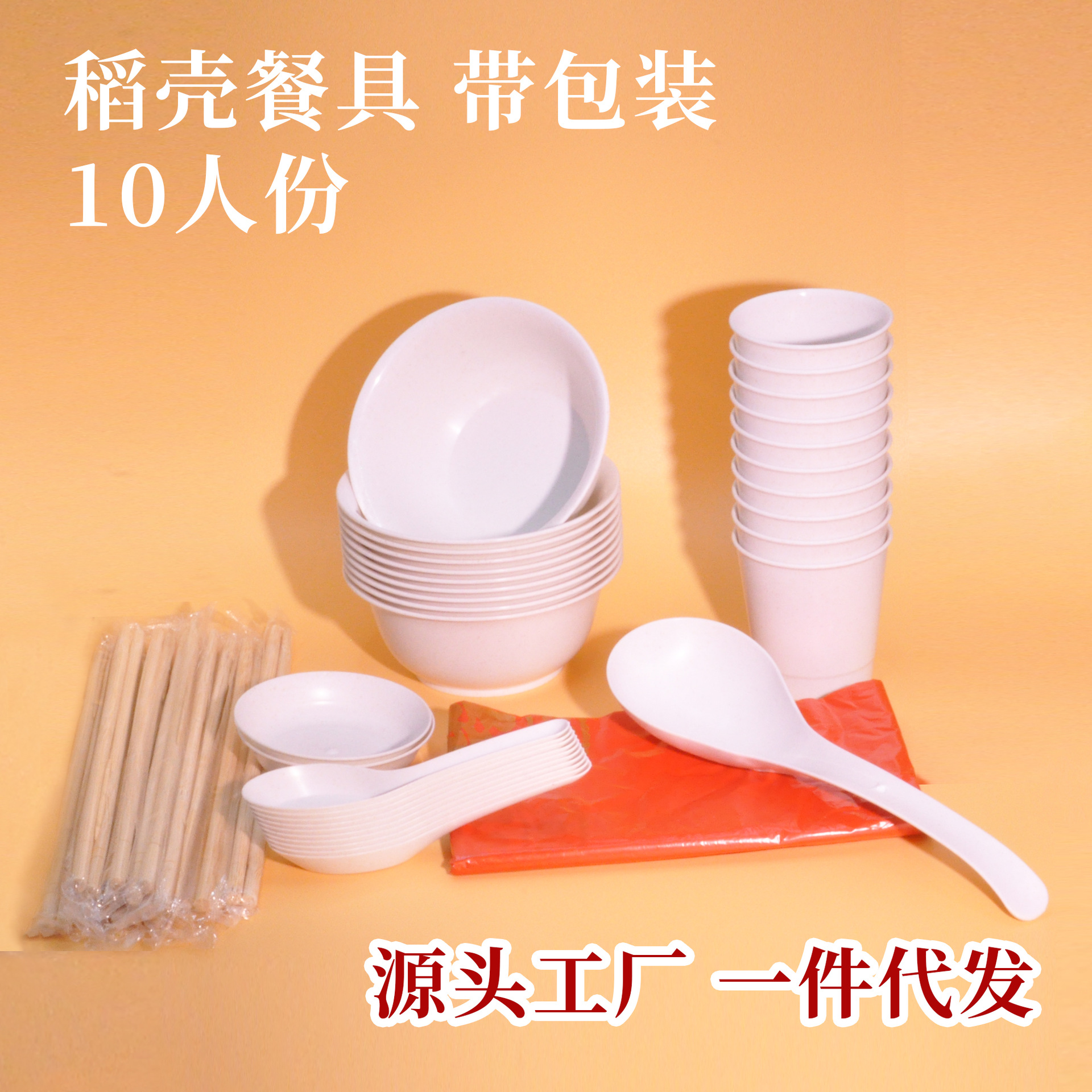使い捨て碗箸籾殻環境保護高級食器セットピクニックバーベキュー酒席会食キャンプアウトドア旅行