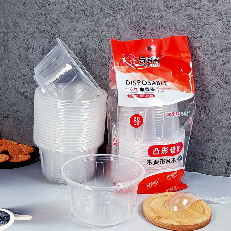 家庭用使い捨てボウル卸売り透明プラスチックスープボウル家庭に500mlの厚いスーパー精品焼きを20個入れた