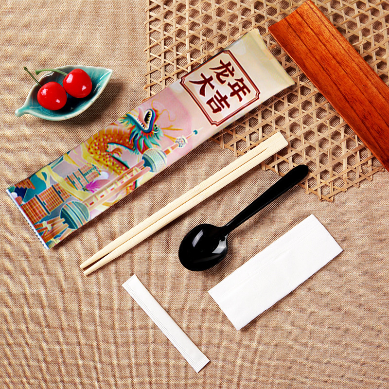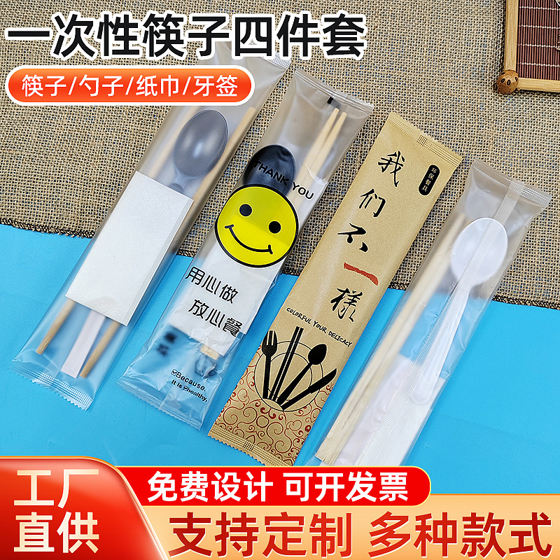 使い捨て箸卸売り広西南寧四点セットスプーン楊枝ティッシュ商用高級食器バッグ卸売り