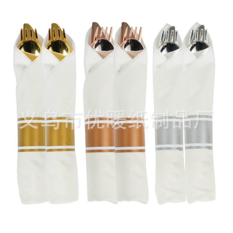 アマゾンクロスボーダー人気プラスチックナイフフォークスプーンティッシュセットメッキプラスチックナイフフォーク食器クリーンナプキン