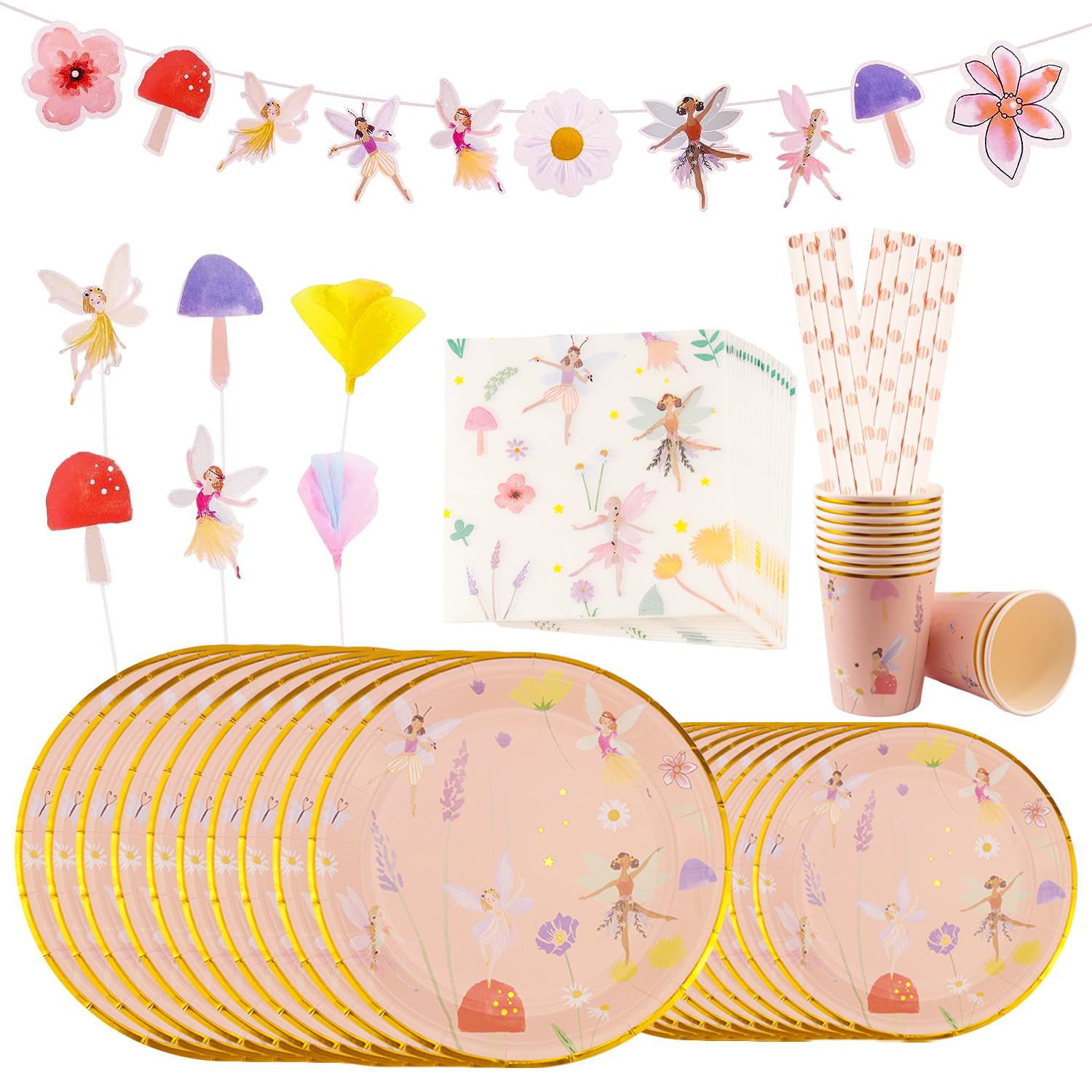 新しい使い捨て紙コップ紙皿セット誕生日パーティーの妖精テーマ紙コップ紙皿妖精テーマ