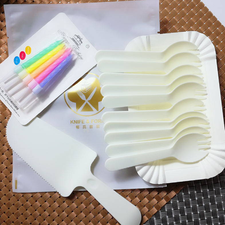 ケーキカトラリーセット、紙パルプ皿、使い捨てプラスチック、誕生日パーティー用、食品グレード、環境に優しく、生分解性