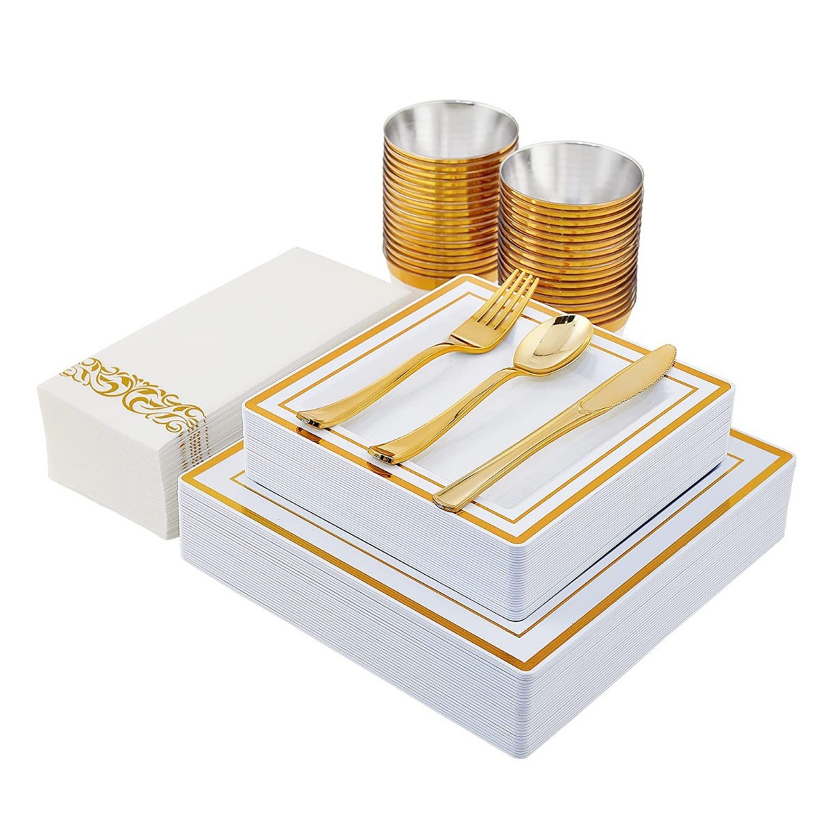 175セット食器7.5インチ10.25インチ使い捨て食器角皿ナイフフォークスプーン角型パーマ皿