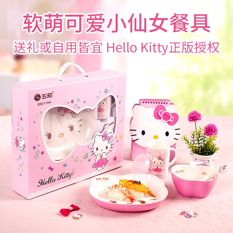 漫画食器茶碗ピンク少女心茶碗キティ猫食器セットかわいいクロミ食器碗