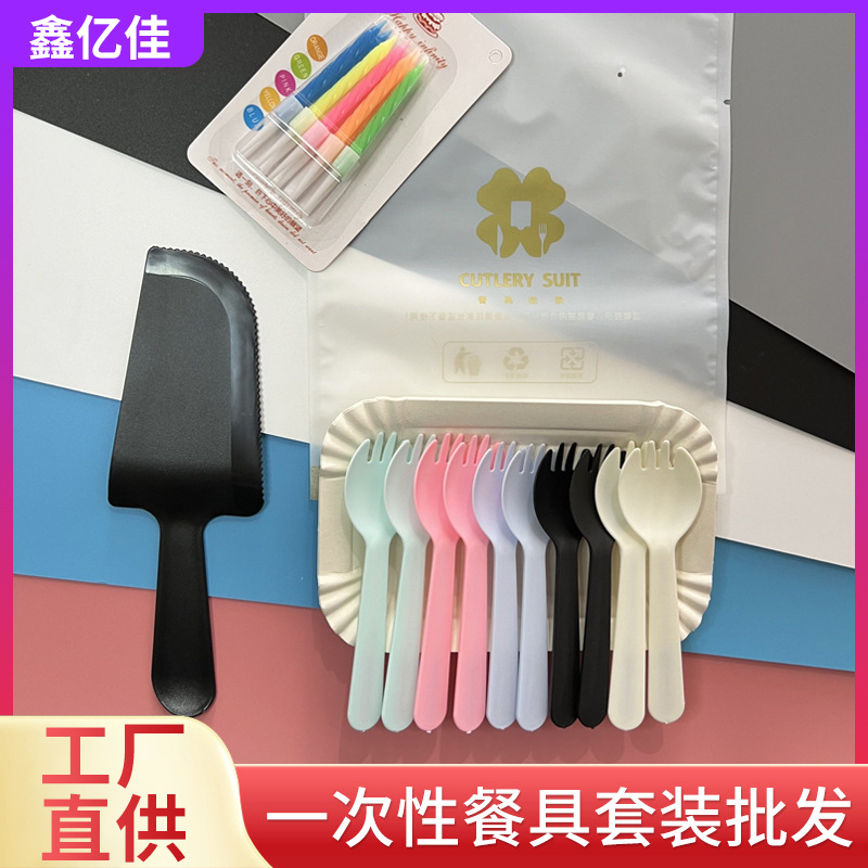 誕生日ケーキナイフフォーク皿食器プラスチック使い捨て皿セット誕生日ナイフフォーク皿セット卸売り四合一
