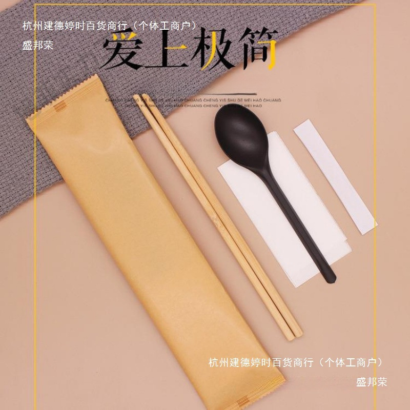 割り箸四点セットスプーン付きティッシュ外食食器ファーストフードセット業務用包装箸卸売り
