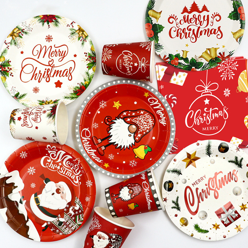 クリスマス使い捨て食器セットアニメ円形かわいい紙コップ紙皿祝日パーティー食器用品卸売り