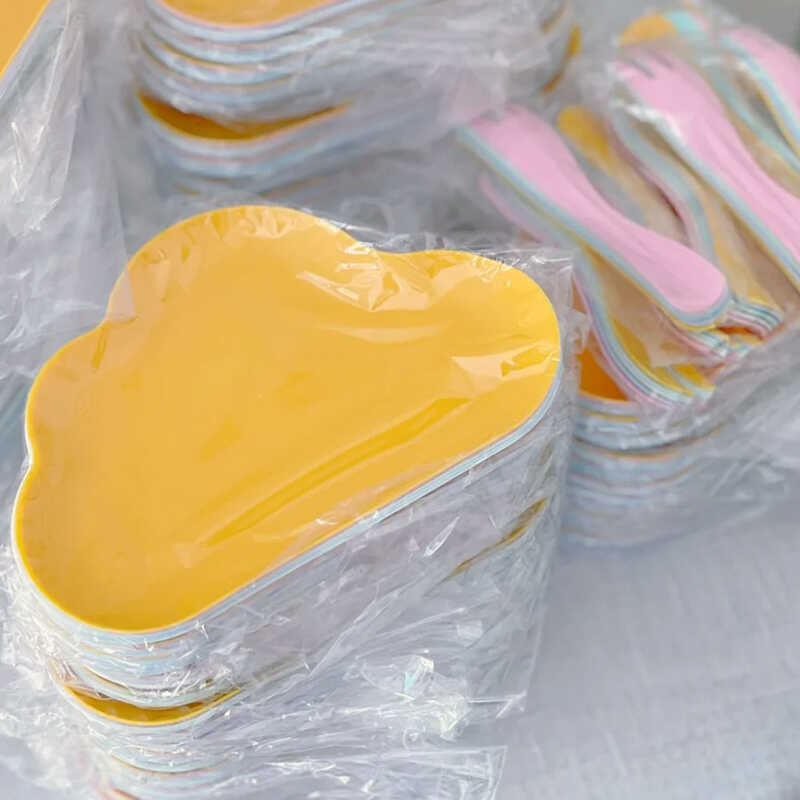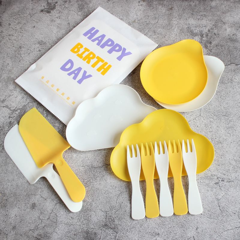 ネット赤雲盤セット使い捨て誕生日ケーキナイフフォーク盤三合一食器プラスチック焙煎用品