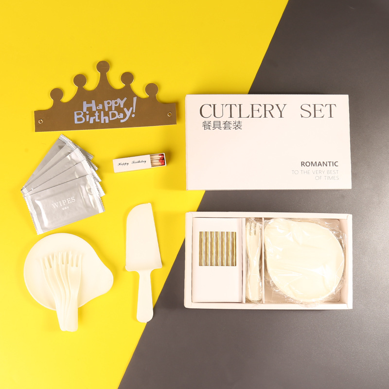 誕生日ケーキ皿使い捨て紙皿ナイフフォークセット高級水滴形皿ろうそく帽子食器ギフトボックス