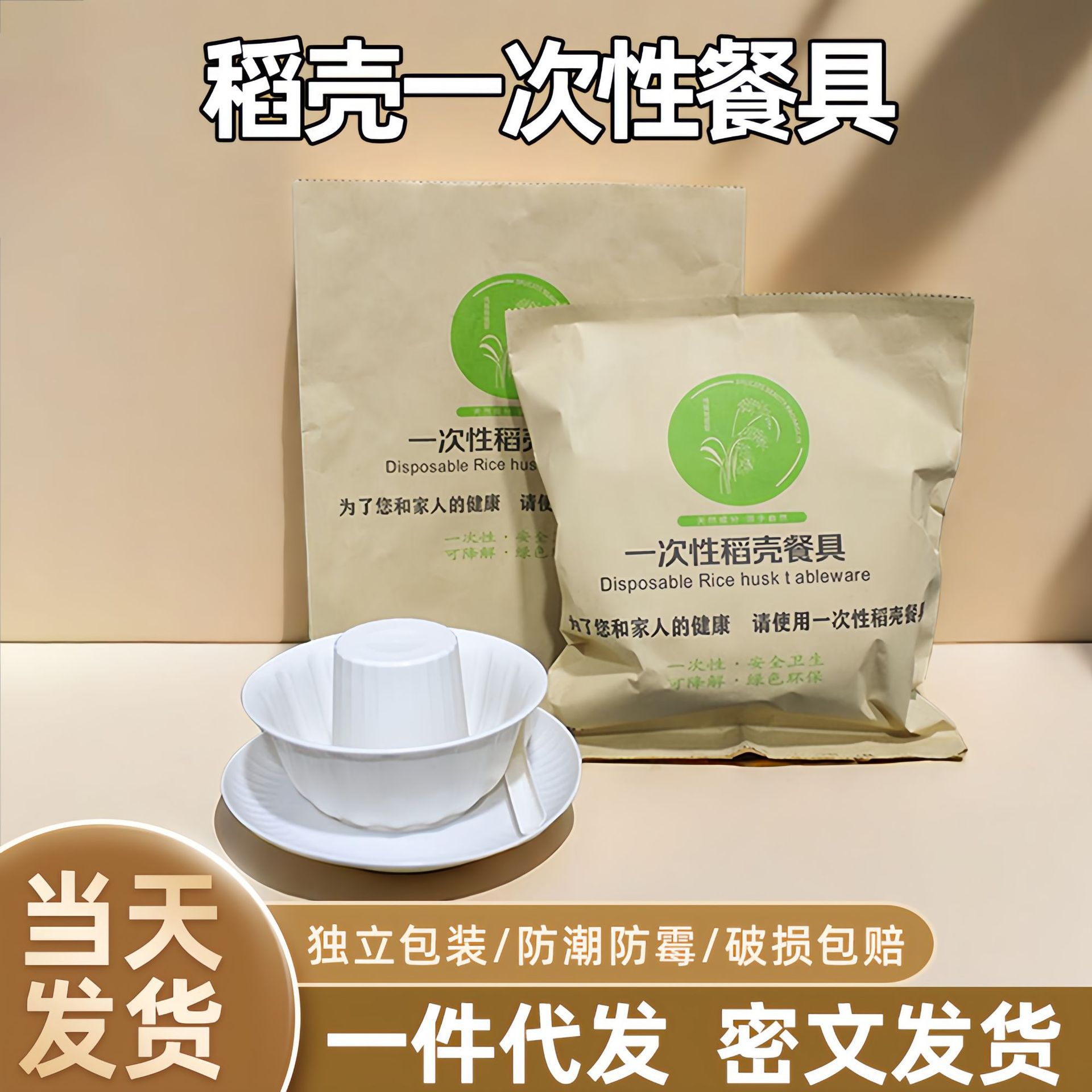 籾殻使い捨て食器独立包装杯杯スプーン皿分解可能セットホテル結婚酒席用