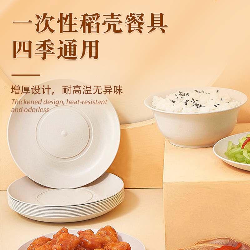 使い捨て籾殻食器プラスチックシール4点セット分解性環境保護食器酒席キャンプで使い捨て食器を焼く
