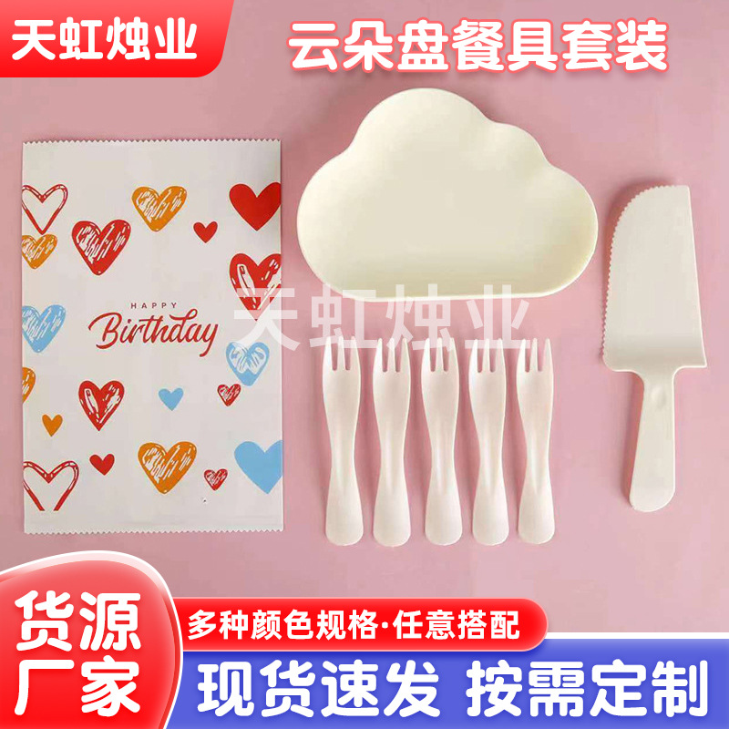 クラウドプレートセット誕生日食器使い捨てプレート肥厚抗とげナイフとフォークインターネット有名人ケーキ食器メーカー卸売