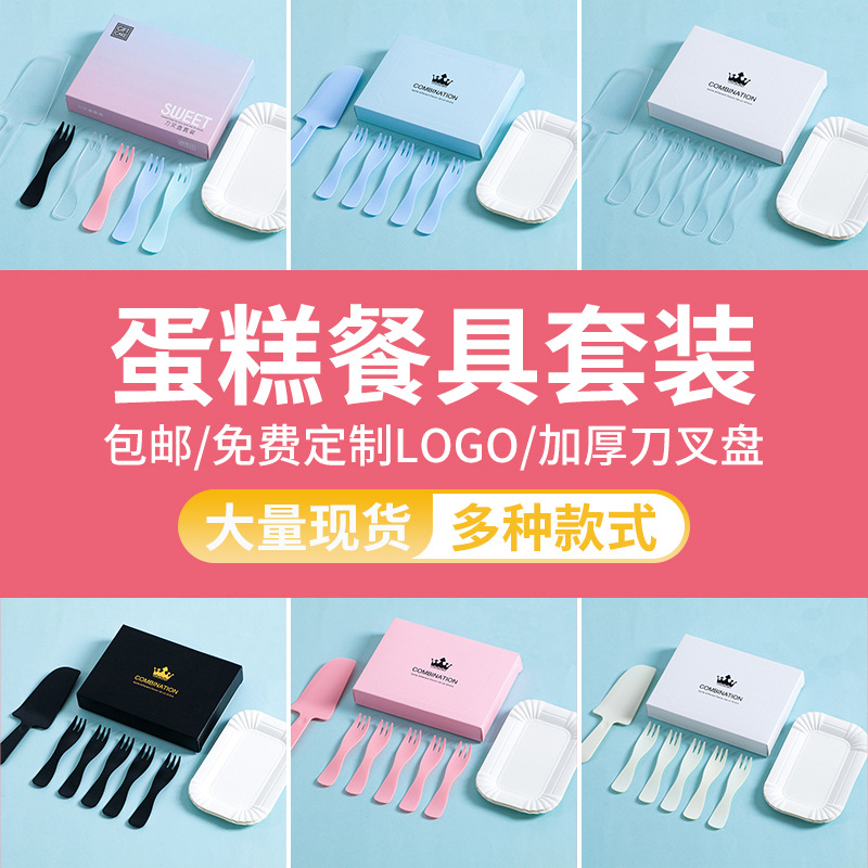 メーカー卸売り使い捨てケーキナイフフォーク皿セット三合一ケーキ食器ケーキナイフフォーク皿セット多色