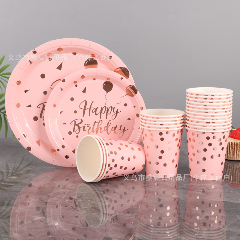 国境を越えた人気箔押し誕生日使い捨て食器セット紙コップパーティー用品使い捨て紙皿