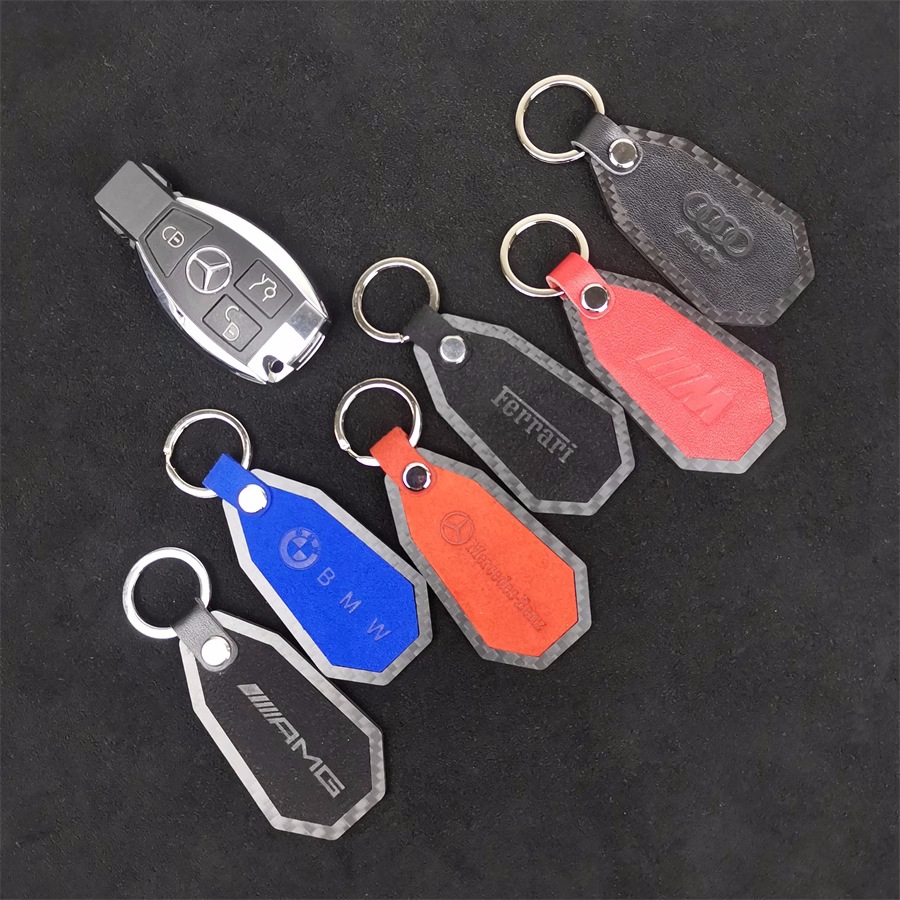 クロスボーダーの炭素繊維の自動車のキーは黒色の高級な皮質のキーの縄を掛けて簡単に自動車の小さいアクセサリの卸売りを売ります。