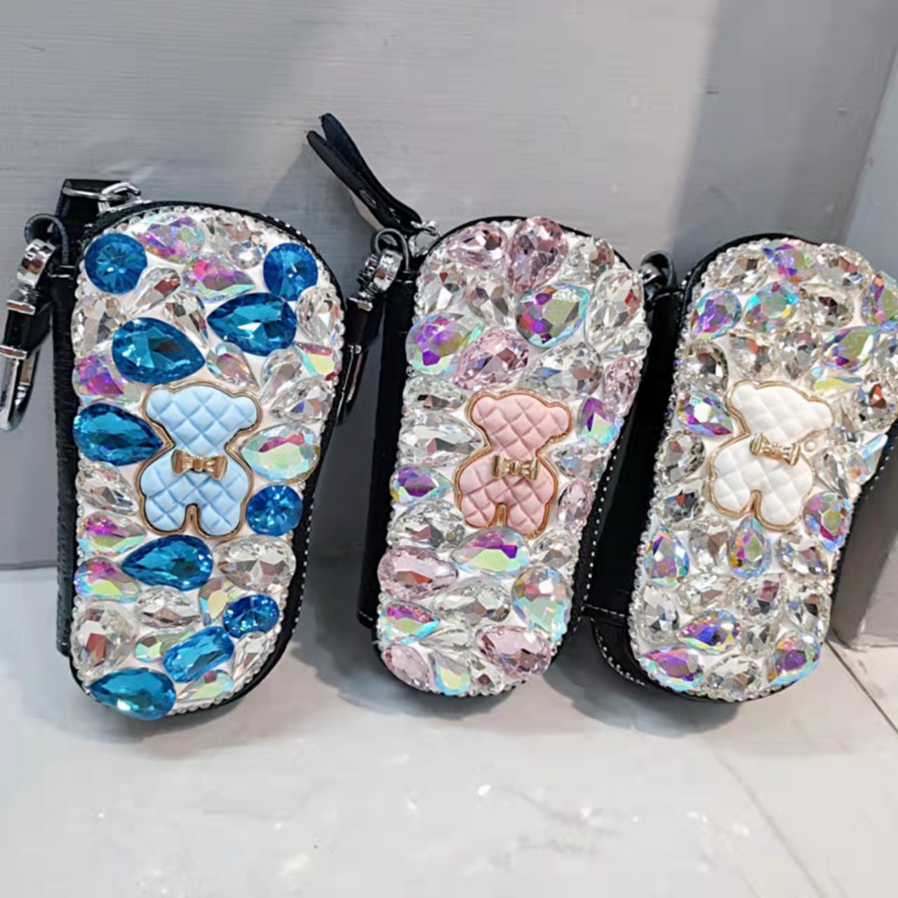新商品の人気牛二層皮のワニの紋様の本革の自動車のキーは水晶を入れてドリルの車のキーを入れて多機能の熊を包みます。