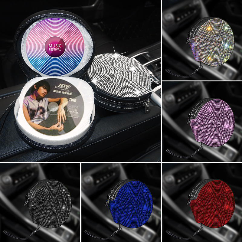 車載用ダイヤモンド装飾CDバッグ、車内CD収納バッグ、車内用CDホルダー、CDケース、越境販売