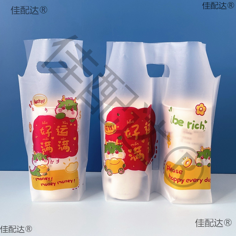 ミルクティー包装袋、厚みのあるインターネット有名人の漫画使い捨てシングルカップバッグ、ダブルカップバッグ、テイクアウトドリンクバッグ、ミルクティーバッグ