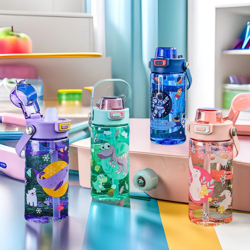 ストローカップ卸売 夏用 男女兼用 アウトドア ポータブル プラスチック製水筒 子供用 漫画風 可愛い ダックビル型 ストローカップ