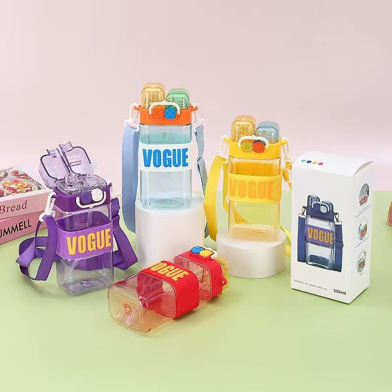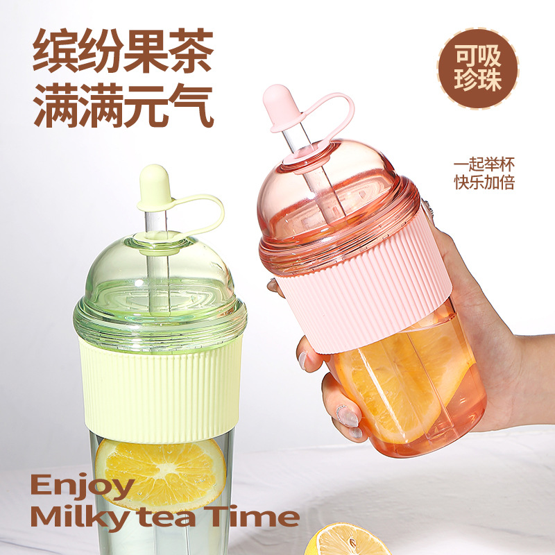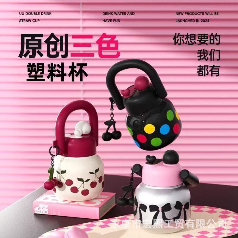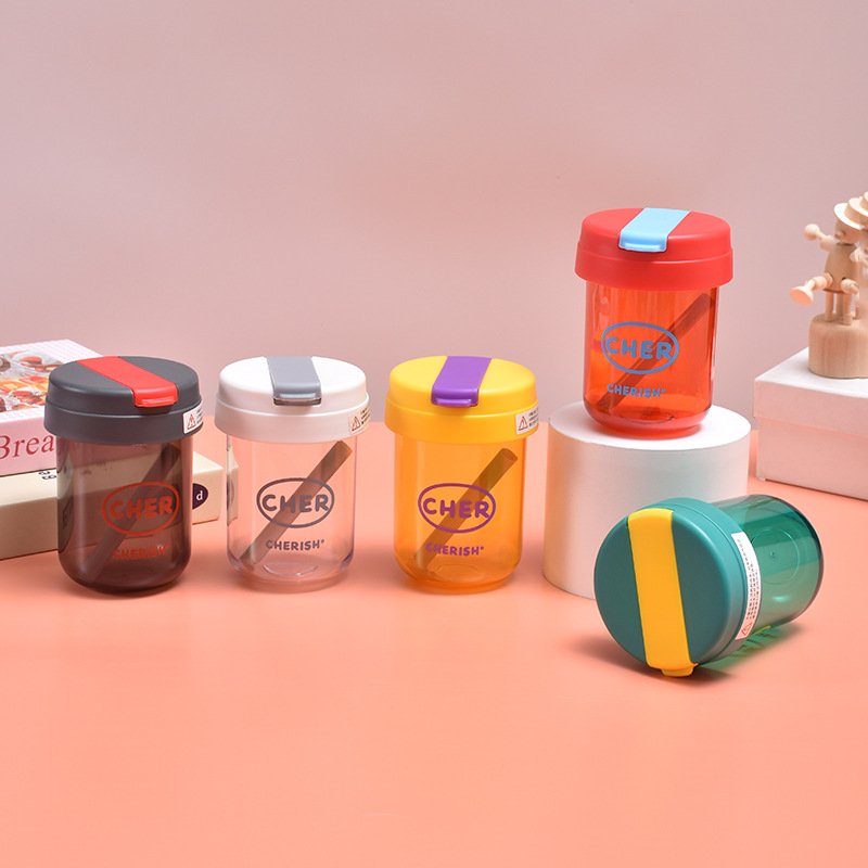 新型二合一双飲双倉杯大容量ストローコップ女子児童通学専用コップかわいい