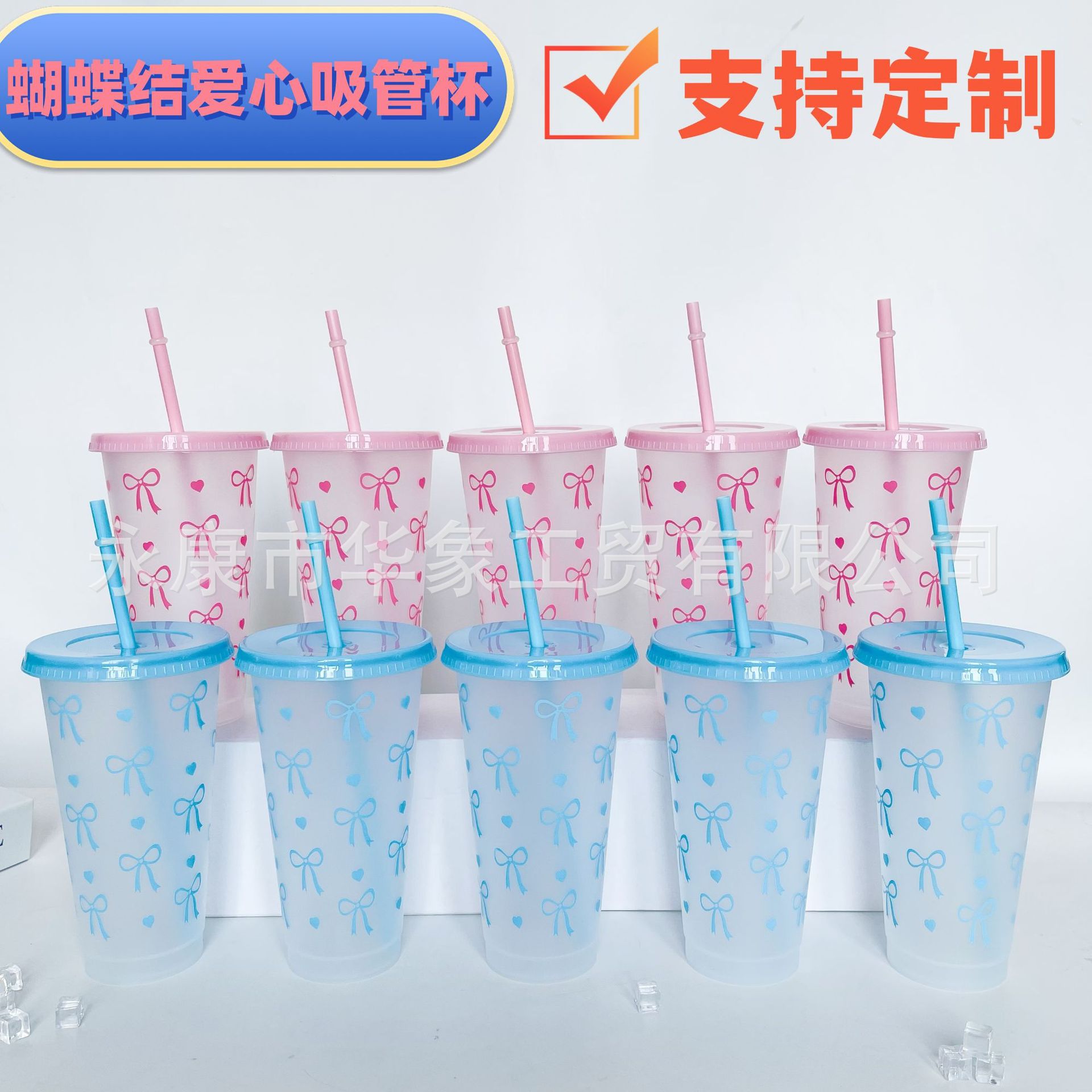 アマゾンクロスボーダー大容量710mlストローカップ感温冷変色カップ単層プラスチックミルクティーカップ
